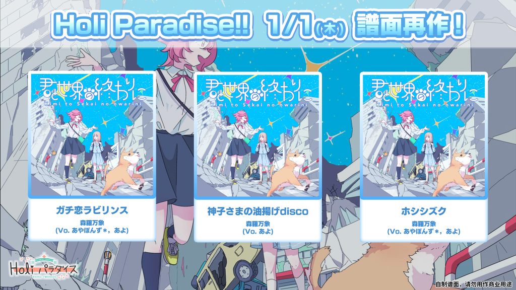 - 在流派分类和版本分类中,有单独的Holi Paradise!!区域